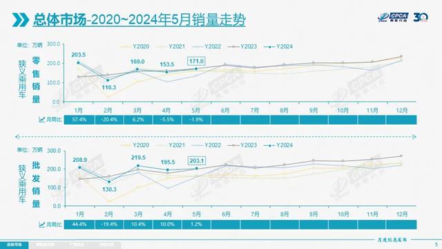 隨著“以舊換新”政策落地實施、各地相應政策措施出臺與跟進,加之車市新品價格戰(zhàn)階段性降溫,5月乘用車市場進入相對較好的發(fā)展階段。據(jù)乘聯(lián)會最新統(tǒng)計數(shù)據(jù)顯示,5月全國乘用車市場零售171萬輛,同比下降1.9%,環(huán)比增長11.4%,1-5月累計零售807.3萬輛,同比增長5.7%。