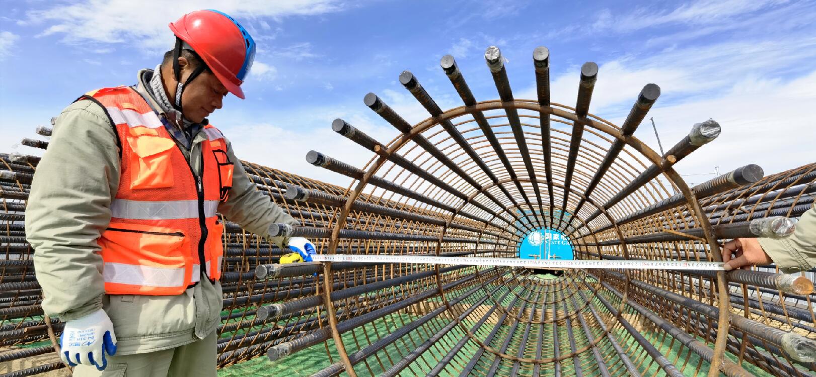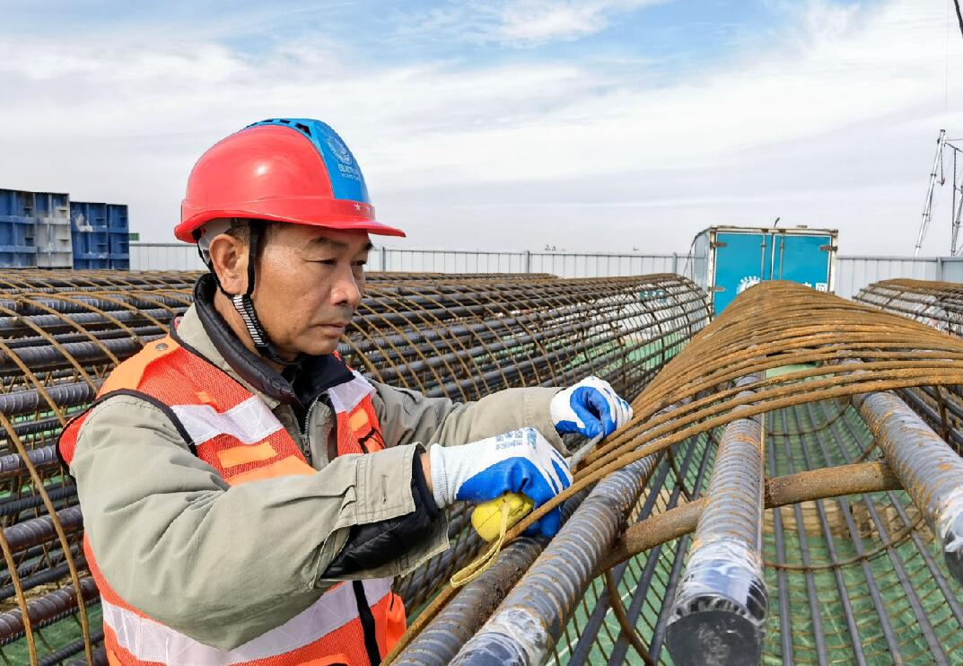 11月9日,在湖北省鐘祥市豐樂(lè)鎮(zhèn)楓梓院村 ,湖北送變電公司施工人員王玉清在白鶴灘至江蘇±800千伏特高壓直流輸電線(xiàn)路(鄂7標(biāo)段)漢江大跨越現(xiàn)場(chǎng),認(rèn)真檢查基礎(chǔ)鋼筋籠主筋長(zhǎng)度、直徑。該工程是國(guó)家“西電東送”戰(zhàn)略部署的重點(diǎn)工程,也是加大基礎(chǔ)設(shè)施領(lǐng)域補(bǔ)短板力度的工程之一。工程建成后,對(duì)優(yōu)化國(guó)家能源配置、保障電力安全穩(wěn)定供應(yīng)、推動(dòng)綠色發(fā)展等具有重要戰(zhàn)略意義。(張周、郭暉 攝)