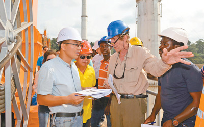由中企承建的喀麥隆曼維萊水電站主體部分今年2月通過喀方臨時(shí)驗(yàn)收委員會(huì)驗(yàn)收。該項(xiàng)目位于喀麥隆南部大區(qū),總投資6.37億美元,總裝機(jī)容量211兆瓦。圖為監(jiān)理團(tuán)隊(duì)和喀方業(yè)主成員對水電站主體部分進(jìn)行技術(shù)驗(yàn)收。