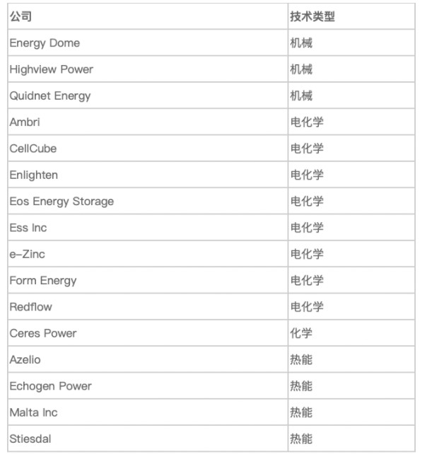 組織中的長(zhǎng)時(shí)儲(chǔ)能公司包括機(jī)械、電化學(xué)、化學(xué)和熱技術(shù)公司,以及儲(chǔ)能公司。其中影響力巨大的投資集團(tuán)Breakthrough Energy Ventures脫穎而出,由英國(guó)石油(BP)和比爾•蓋茨(Bill Gates)合作運(yùn)營(yíng)。成員還包括主要設(shè)備制造商,如Alfa Laval、貝克休斯和西門(mén)子能源、可再生能源開(kāi)發(fā)商Greenko、工業(yè)終端用戶NEOM、里約熱內(nèi)盧Tinto和公用事業(yè)公司紐約電力局。