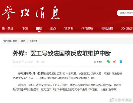 據(jù)路透社巴黎4月11日?qǐng)?bào)道,法國(guó)總工會(huì)發(fā)言人稱(chēng),政府計(jì)劃進(jìn)行的養(yǎng)老金改革引發(fā)罷工,法國(guó)電力公司在法國(guó)經(jīng)營(yíng)的9座核反應(yīng)堆維護(hù)中斷。
