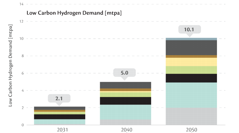 圖注:2031-2050阿聯(lián)酋國內(nèi)氫能需求預(yù)測