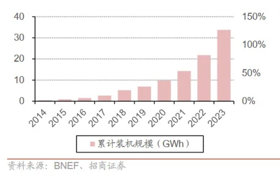 圖:2014-2023全球戶儲累計裝機規(guī)模(GWh)