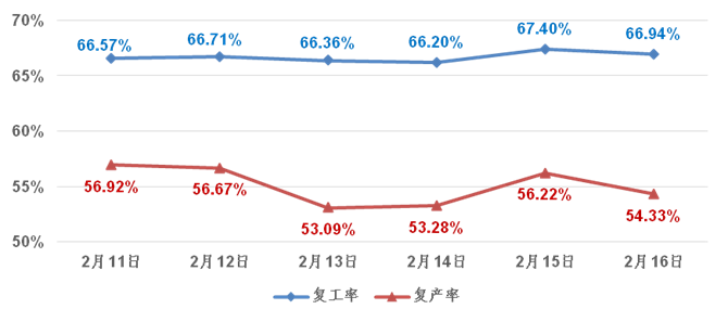 2月16日各市(州)復(fù)產(chǎn)情況分布圖