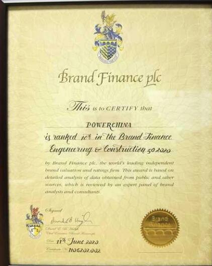 中國電建集團入圍Brand Finance2020全球最有價值50大工程和建設品牌