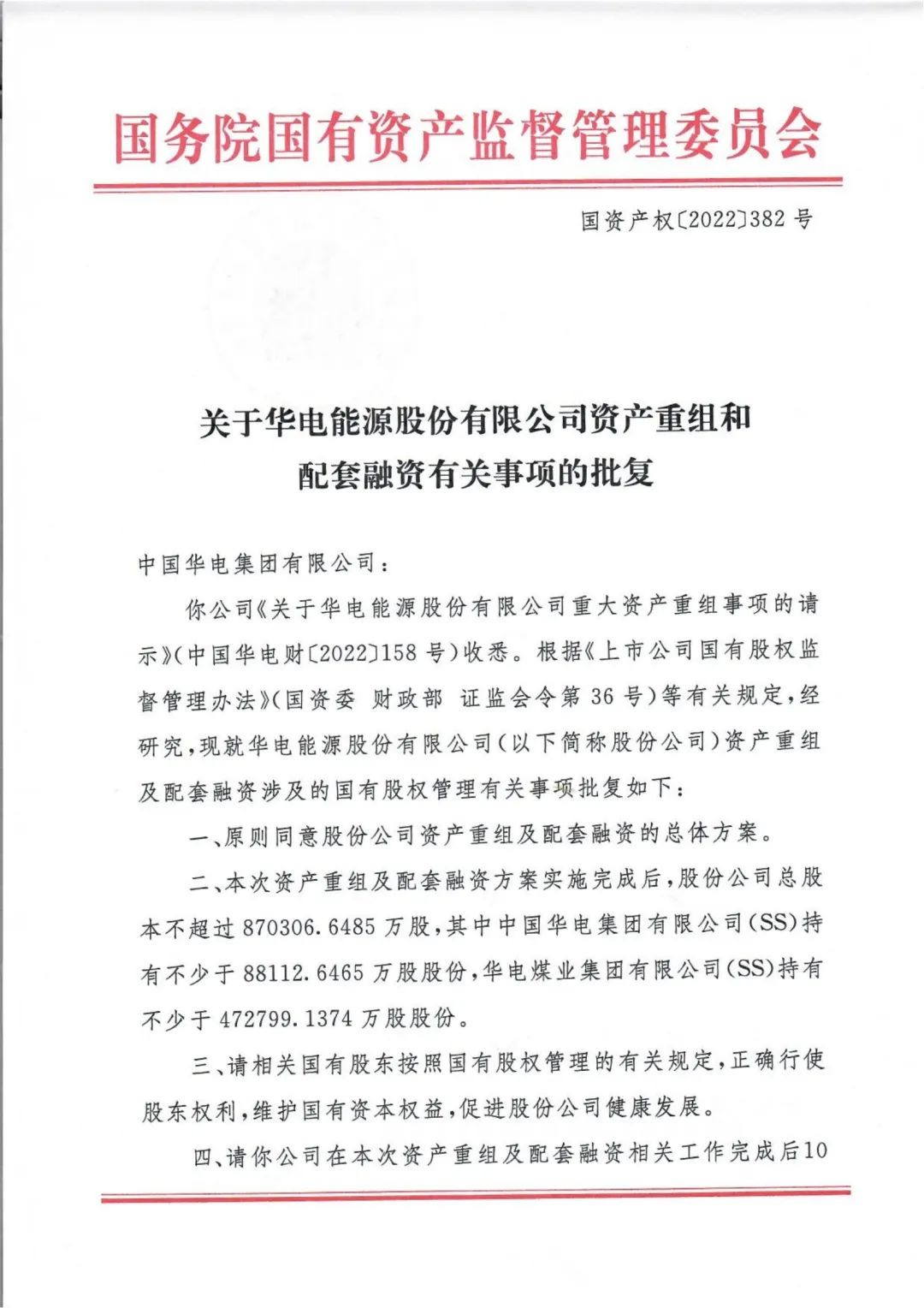 華電能源也發(fā)布公告,確認重大資產(chǎn)重組事項獲得國務(wù)院國資委批復。