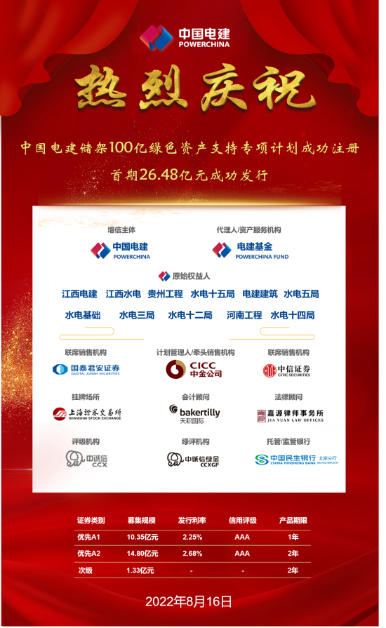 近日,“中國(guó)電建2022年第1-10期綠色資產(chǎn)支持專(zhuān)項(xiàng)計(jì)劃”取得上海證券交易所批復(fù),綠色儲(chǔ)架規(guī)模達(dá)100億元。本項(xiàng)目以電建股份成員單位持有的綠色應(yīng)收款項(xiàng)為基礎(chǔ)資產(chǎn),由電建股份作為增信機(jī)構(gòu),電建基金作為代理人統(tǒng)一歸集基礎(chǔ)資產(chǎn)并發(fā)行綠色資產(chǎn)支持證券。一次儲(chǔ)架分次發(fā)行和基金公司代理人模式為電建成員單位提供了壓降“兩金”、降低資產(chǎn)負(fù)債率的便捷高效新渠道。