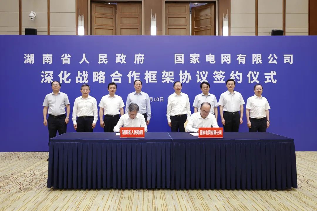 6月10~11日,國家電網(wǎng)有限公司董事長、黨組書記辛保安在長沙拜會湖南省委書記沈曉明,省委副書記、省長毛偉明并舉行會談。雙方表示,要堅持以習(xí)近平新時代中國特色社會主義思想為指導(dǎo),全面貫徹落實黨的二十大精神,加快構(gòu)建新型電力系統(tǒng)、建設(shè)新型能源體系,推動湖南能源電力高質(zhì)量發(fā)展,在實現(xiàn)“三高四新”美好藍圖中彰顯擔(dān)當(dāng)作為,為全面建設(shè)社會主義現(xiàn)代化新湖南作出更大貢獻。湖南省委常委、常務(wù)副省長李殿勛,省委常委、秘書長謝衛(wèi)江,副省長秦國文,公司副總經(jīng)理、黨組成員潘敬東參加會談。潘敬東與李殿勛代表雙方簽署深化戰(zhàn)略合作框架協(xié)議。