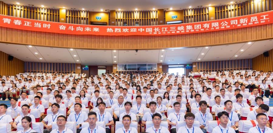 三峽集團(tuán)有關(guān)部門(mén)、單位負(fù)責(zé)人和2023年全體新員工參加開(kāi)班式。(攝影:胡九思)