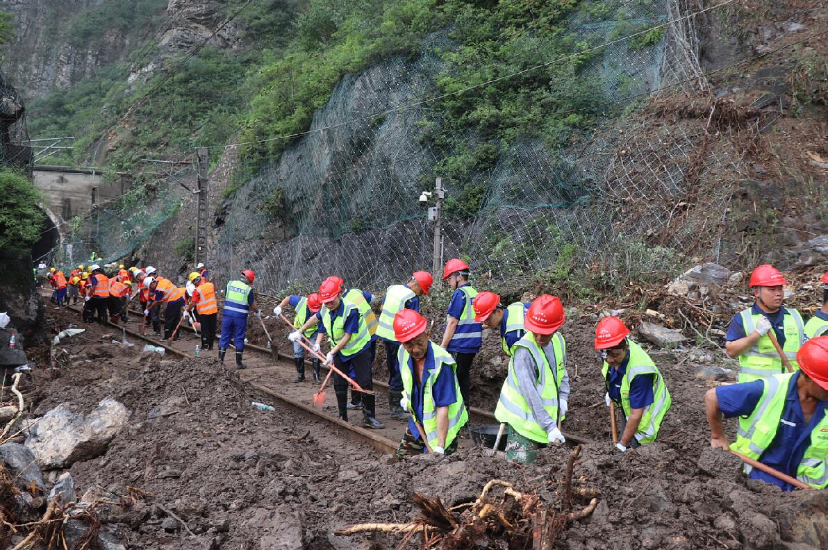 7月30日,受北京特大暴雨影響,三輛列車受困停靠在北京門頭溝妙峰山鎮(zhèn)山區(qū)。由于交通完全阻隔,災(zāi)情仍在持續(xù),現(xiàn)場救援刻不容緩。8月1日晚上9點(diǎn)半,接上級通知,中鐵十四局京唐、石港、雄商、雄忻、津滄等北京周邊項(xiàng)目共275人連夜趕赴北京門頭溝搶險(xiǎn)一線,搶修被山體沖刷的淤泥、樹根、巨石覆蓋的鐵路路基,為受困列車旅客拉通逃生通道。