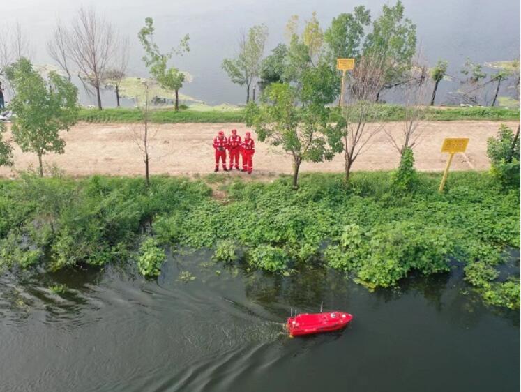 8月5日,天津靜海大清河,技術(shù)人員利用無人偵測(cè)船不間斷監(jiān)測(cè)水情,探測(cè)水下地形地物,快速準(zhǔn)確獲取水下堆體數(shù)據(jù)及模型……