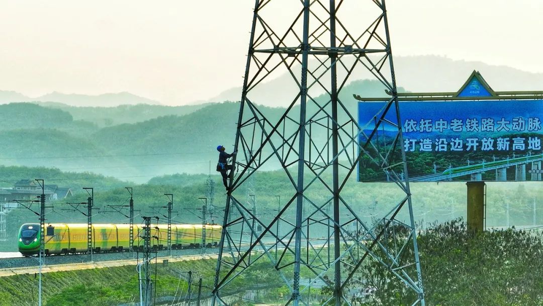 南方電網(wǎng)工作人員對(duì)中老鐵路沿線線路進(jìn)行運(yùn)維。(李志杰)