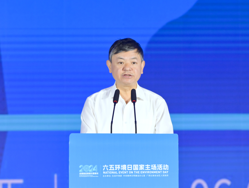 6月5日,生態(tài)環(huán)境部、中央精神文明建設(shè)辦公室、廣西壯族自治區(qū)人民政府在南寧市聯(lián)合舉辦2024年六五環(huán)境日國家主場活動(dòng)。生態(tài)環(huán)境部部長黃潤秋,廣西壯族自治區(qū)黨委書記劉寧出席活動(dòng)并講話。廣西壯族自治區(qū)人民政府主席藍(lán)天立,中央宣傳部部務(wù)會(huì)成員、中央精神文明建設(shè)辦公室專職副主任胡凱紅出席活動(dòng)并致辭。
