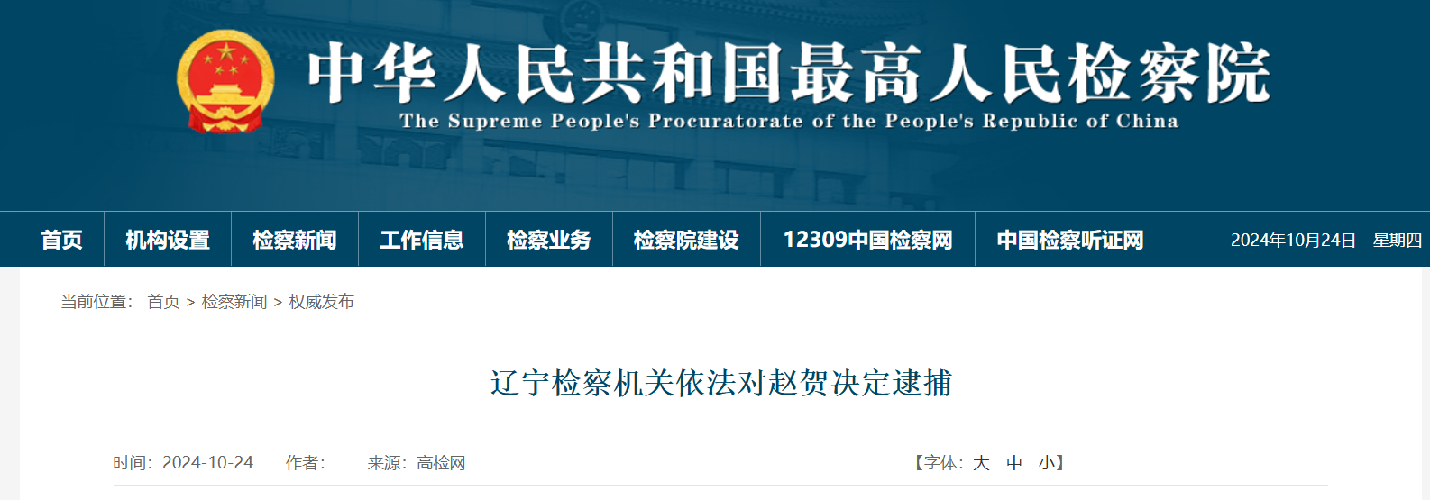 經(jīng)遼寧省人民檢察院指定管轄,由鞍山市人民檢察院審查起訴。日前,鞍山市人民檢察院依法以涉嫌受賄罪對趙賀作出逮捕決定。該案正在進一步辦理中。