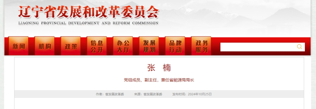 10月25日,遼寧省發(fā)改委官網(wǎng)公布新任黨組成員、副主任張楠,兼任省能源局局長(zhǎng)。