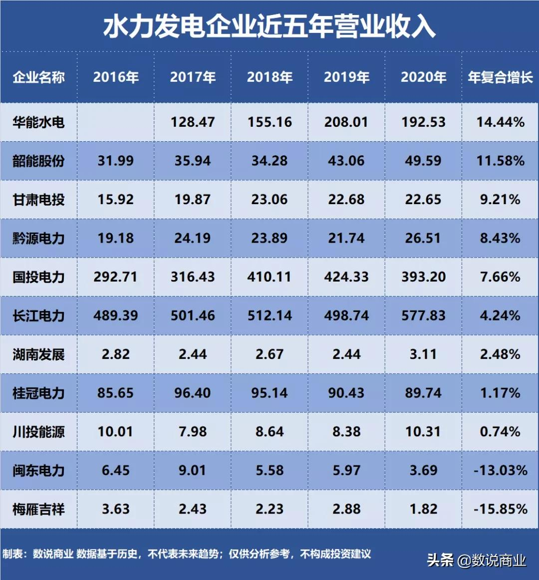 從近五年?duì)I收復(fù)合增長(zhǎng)來(lái)看,華能水電和韶能股份等兩家企業(yè)復(fù)合增長(zhǎng)超過(guò)兩位數(shù),其中華能水電復(fù)合增長(zhǎng)達(dá)到14.44%。