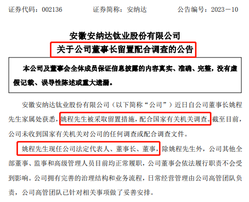 2月27日晚間,已跨界鋰電材料領(lǐng)域的鋰電新秀安納達(dá)發(fā)布了《關(guān)于公司董事長(zhǎng)留置配合調(diào)查的公告》。