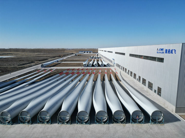 一批批風(fēng)機(jī)裝備制造產(chǎn)業(yè)落戶東北。在中國(guó)一重龍申(齊齊哈爾)復(fù)合材料有限公司葉片制造園區(qū),工人們正在生產(chǎn)風(fēng)電葉片。“從2021年4月啟動(dòng)建設(shè)園區(qū),到2022年5月第一支76米葉片下線,到正在生產(chǎn)中的98米葉片模具,旺盛需求推著我們加緊研發(fā)、突破瓶頸、全速前進(jìn)。”公司總經(jīng)理徐戈說(shuō)。
