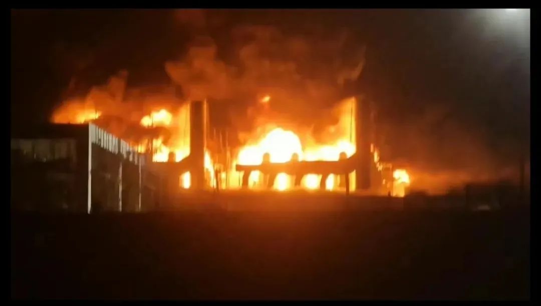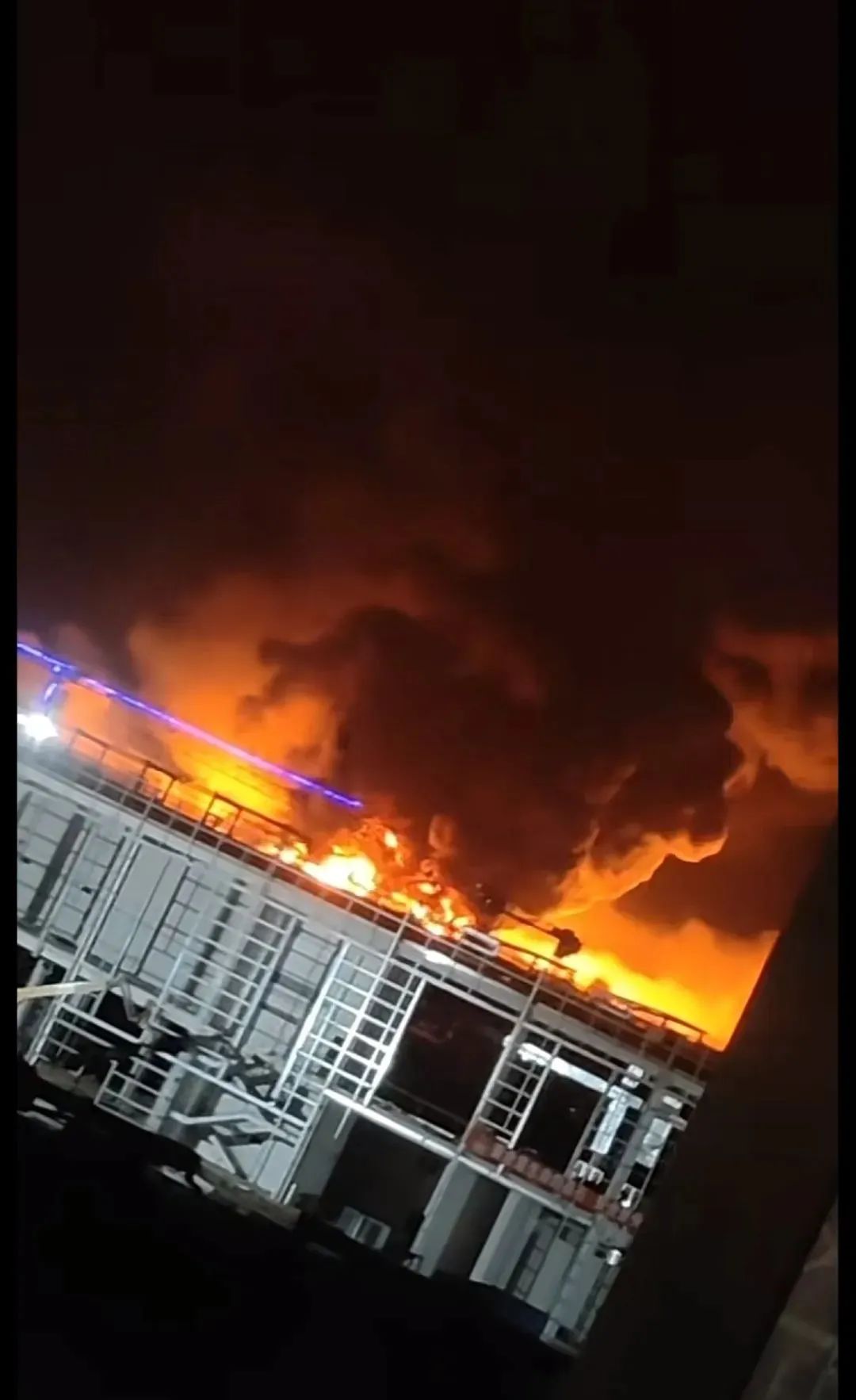 據(jù)多個視頻顯示,火災發(fā)生后,相關方調派了多地大批消防車到場滅火,持續(xù)到晚上12時,火災仍未撲滅。有消息稱是Pt板著火。