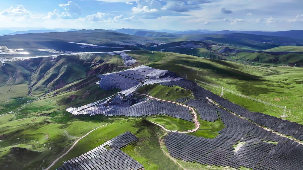 50公里外,海拔4600米的扎拉托桑山上,超過200萬片光伏板覆蓋群山、隨勢起伏。這是全球最大、海拔最高的水光互補電站——柯拉光伏電站,其規(guī)劃裝機容量達3吉瓦,生產(chǎn)的電能通過500千伏輸電線路接入兩河口水電站。