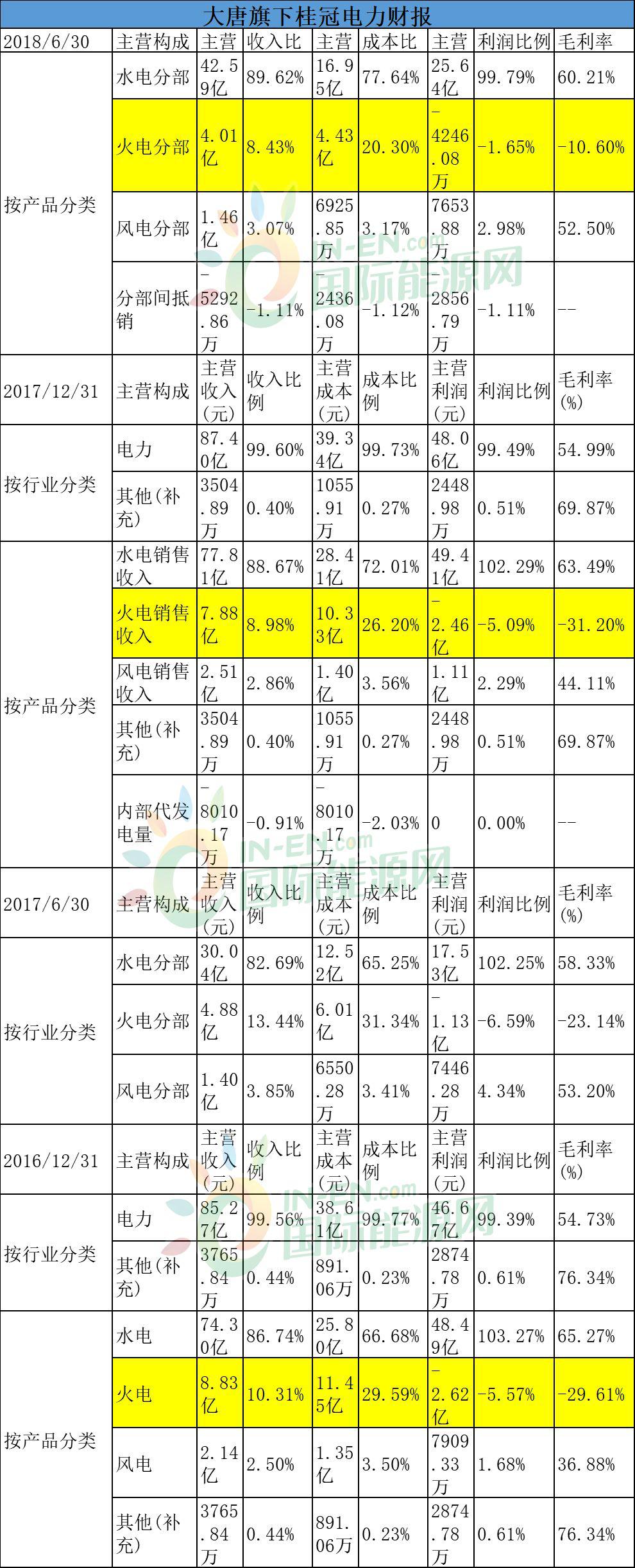 大唐集團(tuán)旗下的上市公司桂冠電力(600236)財(cái)報(bào)顯示,火電板塊一直都在拖業(yè)績的后腿。2016年火電利潤占比是-5.57%,2017年上半年,火電利潤占比是-6.59%,到2018年上半年,火電利潤占比依然是負(fù)數(shù)。
