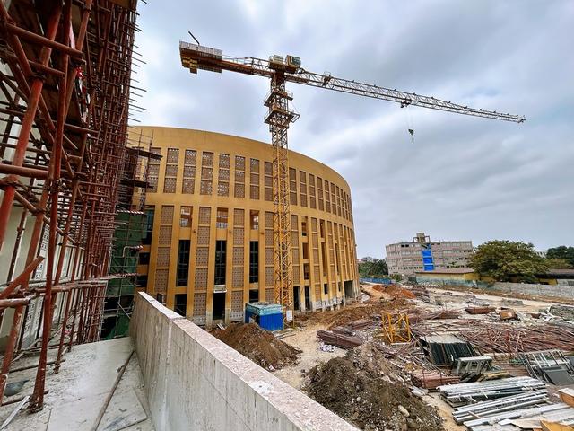 在剛果(金)首都金沙薩的凱旋大道上,坐落著20世紀(jì)七八十年代中國援建的人民宮和烈士體育場。與其隔街相望,一座備受矚目的嶄新文化殿堂——中部非洲文化藝術(shù)中心正在建設(shè)中。