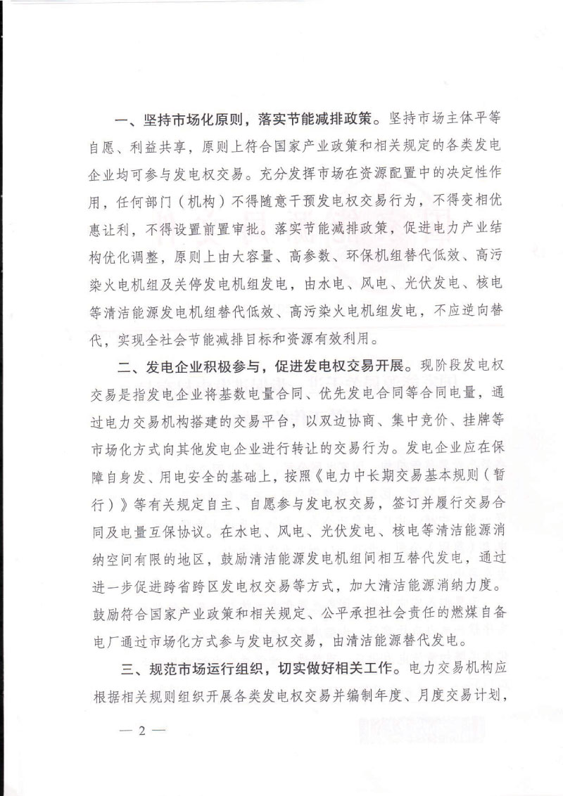 《通知》明確,要從五個方面穩(wěn)妥有序推進電力市場建設(shè),大幅度提高電力市場化交易比重。一是堅持市場化原則,落實節(jié)能減排政策。堅持市場主體平等自愿、利益共享,原則上符合國家產(chǎn)業(yè)政策和相關(guān)規(guī)定的各類發(fā)電企業(yè)均可參與發(fā)電權(quán)交易。二是發(fā)電企業(yè)積極參與,促進發(fā)電權(quán)交易開展?,F(xiàn)階段發(fā)電權(quán)交易是指發(fā)電企業(yè)將基數(shù)電量合同、優(yōu)先發(fā)電合同等合同電量,通過電力交易機構(gòu)搭建的交易平臺,以雙邊協(xié)商、集中競價、掛牌等市場化方式向其他發(fā)電企業(yè)進行轉(zhuǎn)讓的交易行為。三是規(guī)范市場運行組織,切實做好相關(guān)工作。電力交易機構(gòu)應(yīng)根據(jù)相關(guān)規(guī)則組織開展各類發(fā)電權(quán)交易并編制年度、月度交易計劃,及時完成結(jié)算,做好電力交易信息披露等相關(guān)工作。四是持續(xù)完善交易規(guī)則,積極推進市場建設(shè)。各地發(fā)電權(quán)交易應(yīng)與電力市場建設(shè)相關(guān)工作統(tǒng)籌考慮,做好發(fā)電權(quán)交易與優(yōu)先發(fā)電優(yōu)先購電計劃以及其他電力交易品種之間的協(xié)調(diào)與銜接,原則上由清潔能源優(yōu)先發(fā)電計劃外電量替代火電基數(shù)電量。五是加強電力市場監(jiān)管,維護市場交易秩序。各派出能源監(jiān)管機構(gòu)要進一步加強對發(fā)電權(quán)交易工作的綜合指導(dǎo),切實加強發(fā)電權(quán)交易監(jiān)管,維護公平公正的市場秩序。