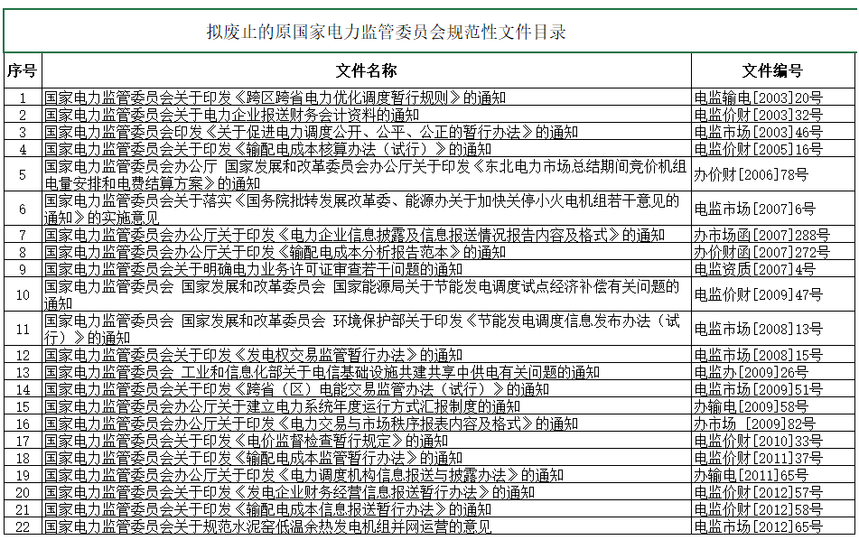 國(guó)家能源局綜合司關(guān)于廢止原國(guó)家電力監(jiān)管委員會(huì)部分規(guī)范性文件征求意見(jiàn)的公告