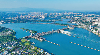 葛洲壩水利樞紐被譽(yù)為“萬里長(zhǎng)江第一壩”。1988年12月全部機(jī)組投產(chǎn)發(fā)電,總裝機(jī)容量273.5萬千瓦,年均發(fā)電量157億千瓦時(shí)。