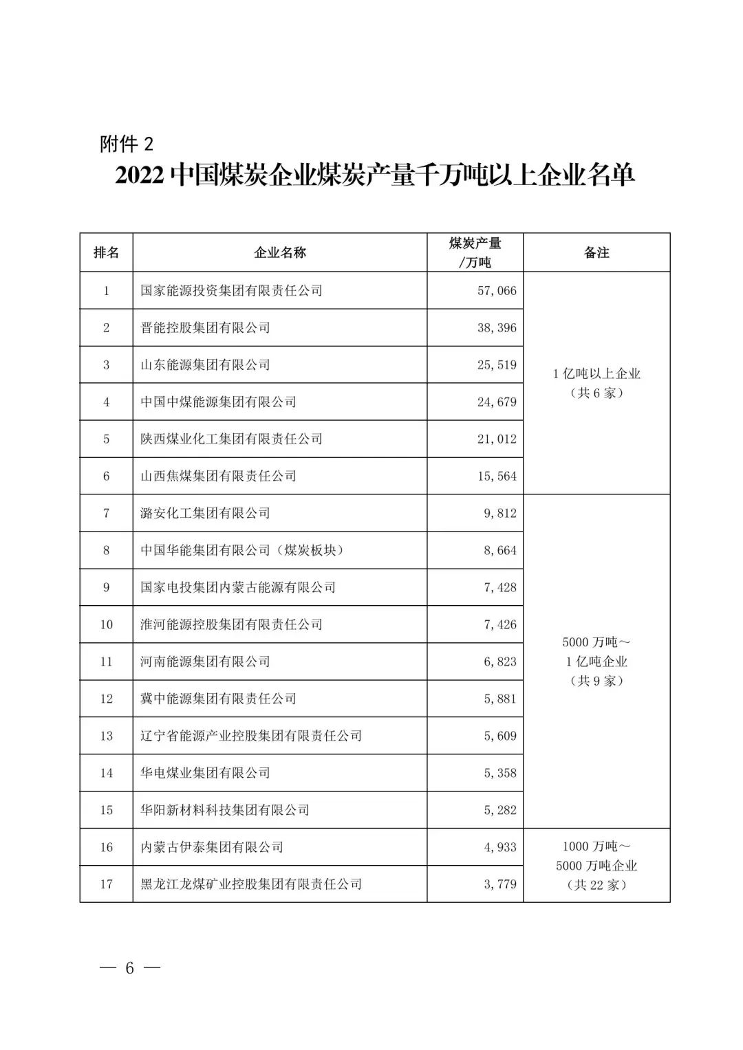 8月5日,中國煤炭工業(yè)協(xié)會(huì)發(fā)布2022中國煤炭企業(yè)50強(qiáng)和煤炭產(chǎn)量千萬噸以上企業(yè)名單。排名先后依據(jù)營業(yè)收入而非煤炭產(chǎn)量。