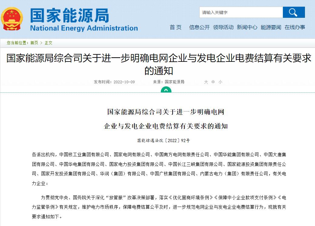 國家能源局綜合司關(guān)于進(jìn)一步明確電網(wǎng)企業(yè)與發(fā)電企業(yè)電費(fèi)結(jié)算有關(guān)要求的通知