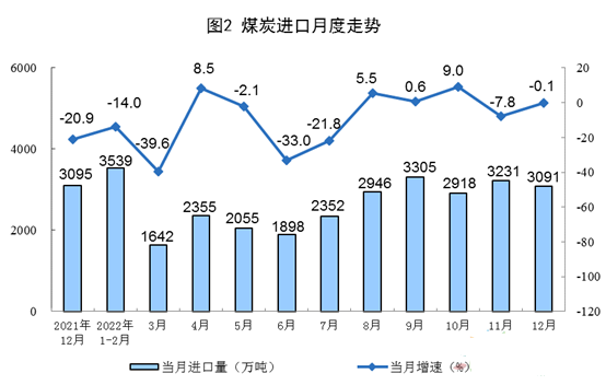 2022年,生產(chǎn)原煤45.0億噸,同比增長(zhǎng)9.0%。進(jìn)口煤炭2.9億噸,同比下降9.2%。