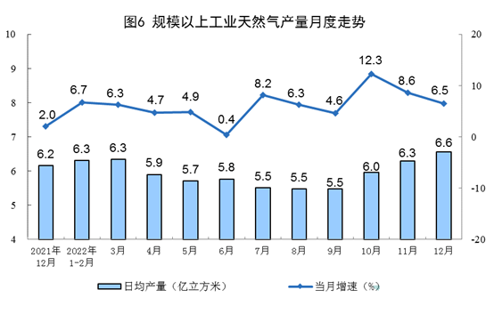 12月份,規(guī)模以上工業(yè)原煤、原油、天然氣和電力生產(chǎn)同比保持增長(zhǎng)。與11月份相比,原煤、原油、天然氣增速有所放緩,電力增速加快。