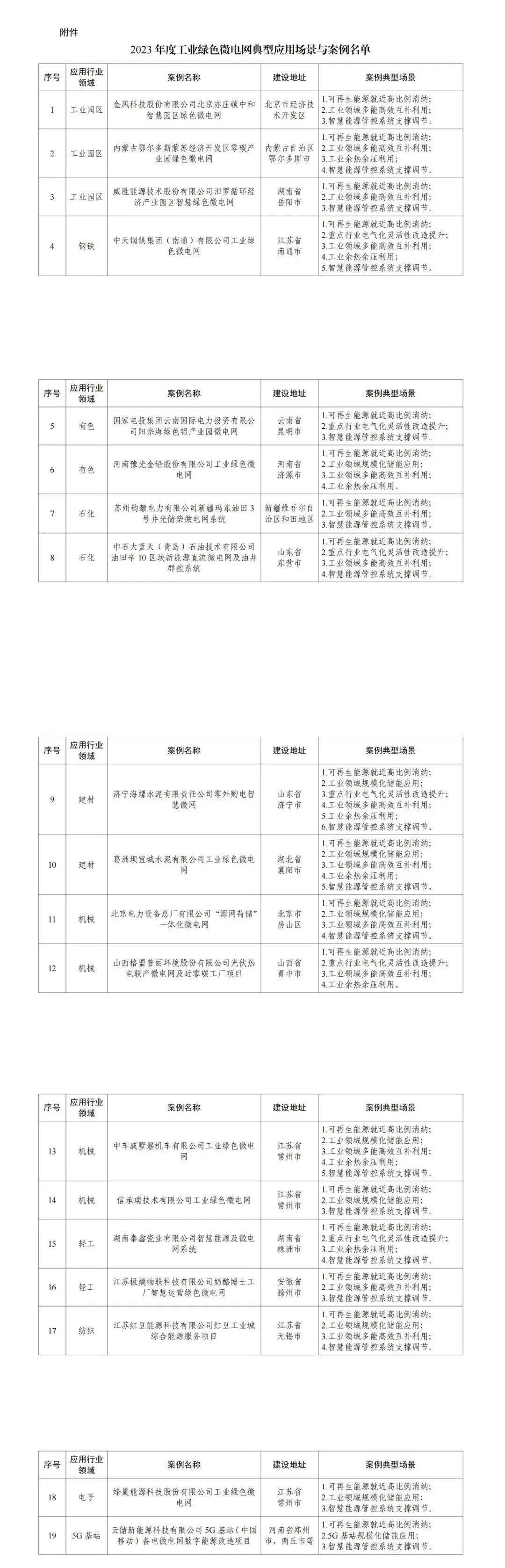 附件:2023年度工業(yè)綠色微電網典型應用場景與案例名單