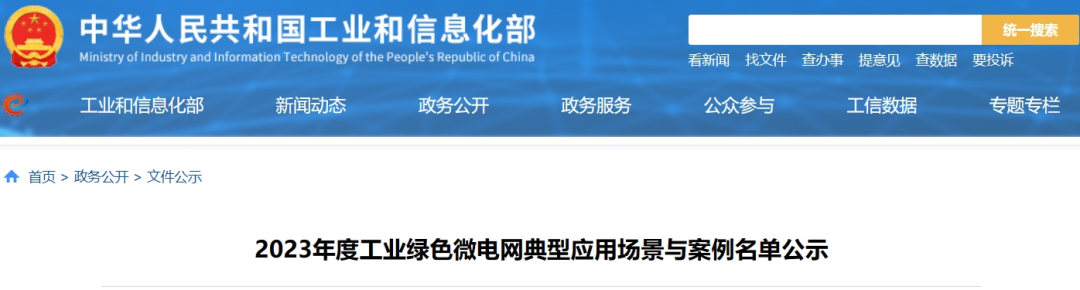 12月14日,工信部公示2023年度工業(yè)綠色微電網典型應用場景與案例名單。