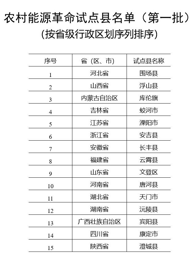 附件:農(nóng)村能源革命試點(diǎn)縣名單(第一批)