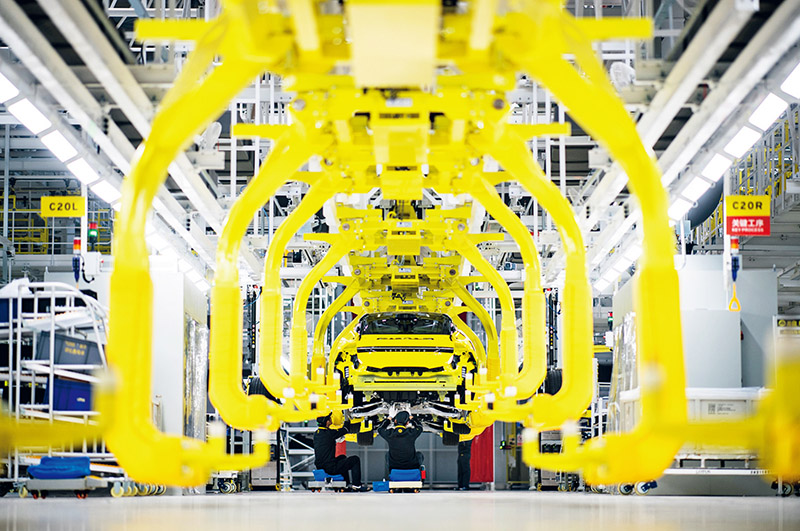 推進新型工業(yè)化是實現(xiàn)經(jīng)濟高質(zhì)量發(fā)展的戰(zhàn)略選擇。圖為2023年1月11日,湖北省武漢市經(jīng)開區(qū)智能網(wǎng)聯(lián)和電動汽車產(chǎn)業(yè)園內(nèi),工人在一家汽車公司的流水線上作業(yè)。 新華社記者 肖藝九/攝