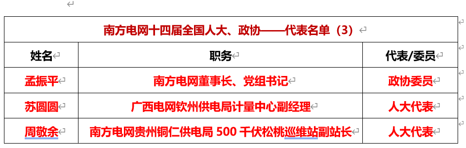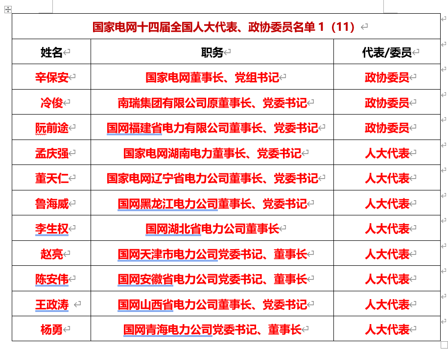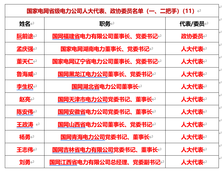 (1)孟振平南方電網(wǎng)董事長(zhǎng)、黨組書(shū)記(政協(xié)委員)