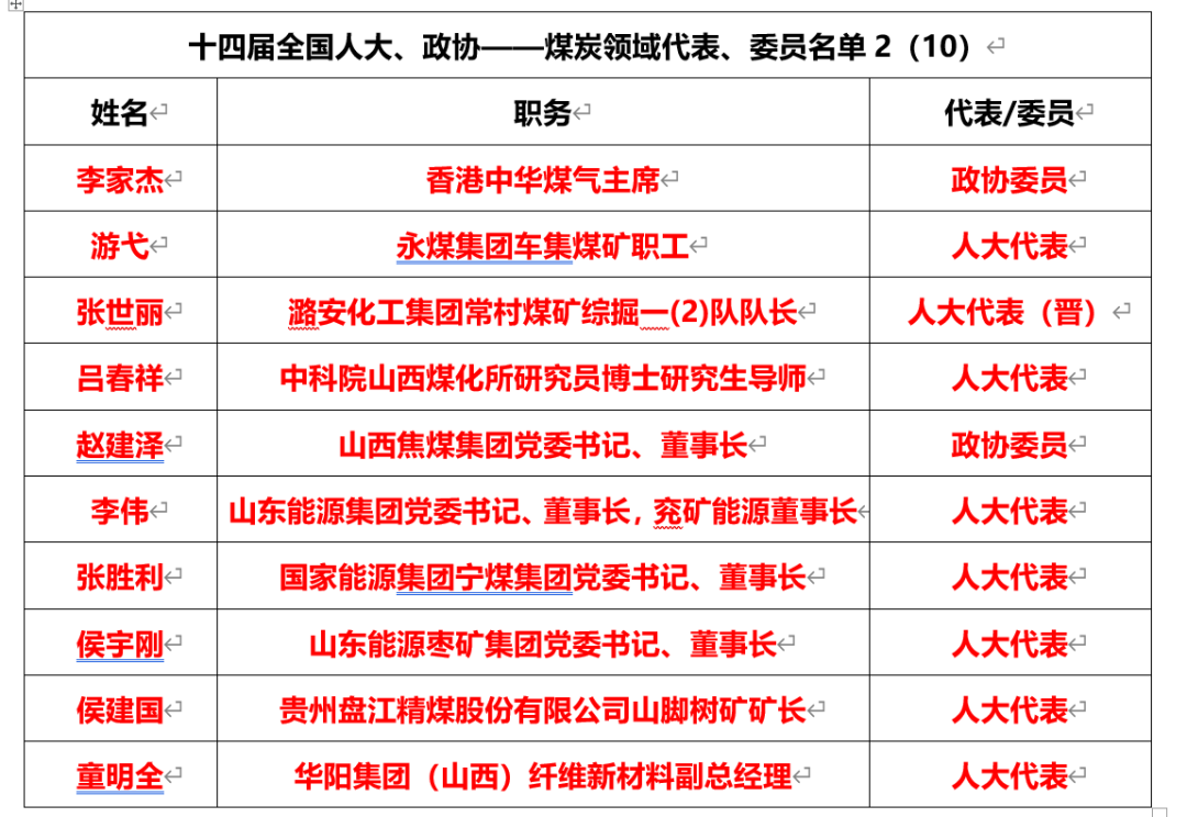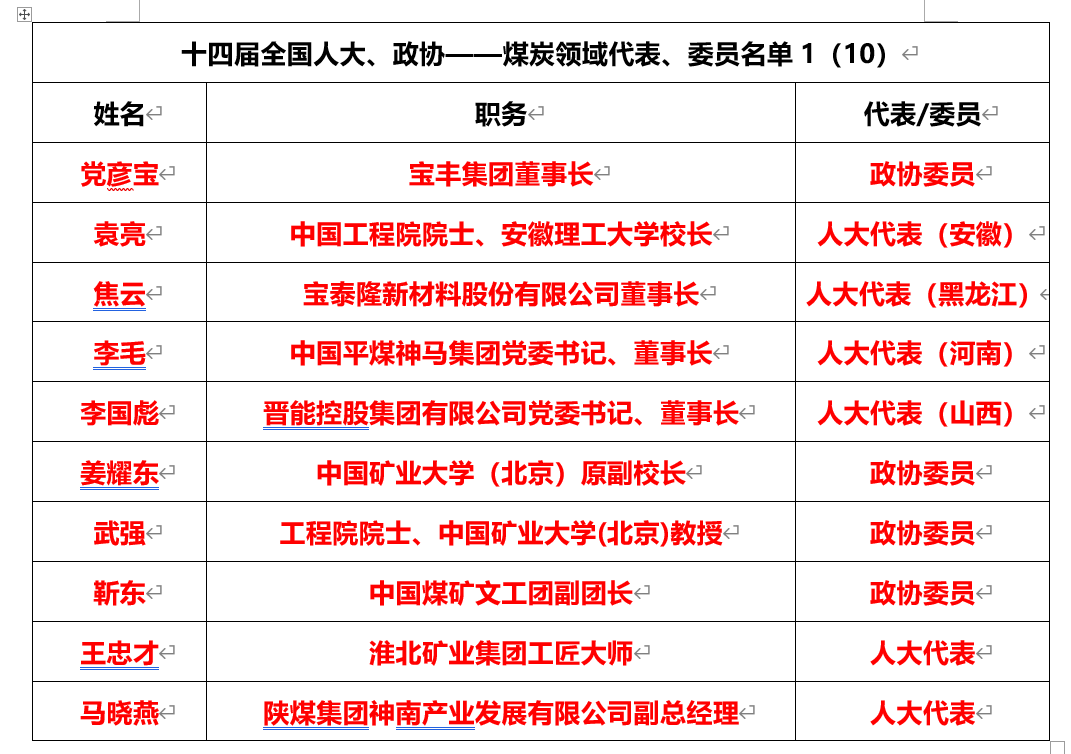 煤炭領(lǐng)域有25人當(dāng)選十四屆全國(guó)人大代表、政協(xié)委員,全國(guó)人大代表有19名,全國(guó)政協(xié)委員有6名。