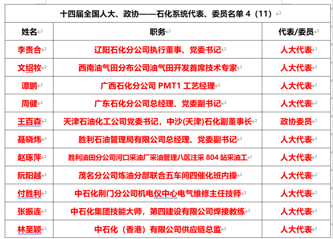 (二)中國(guó)石油(15名,委員1,代表14)