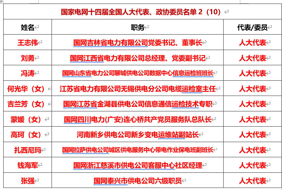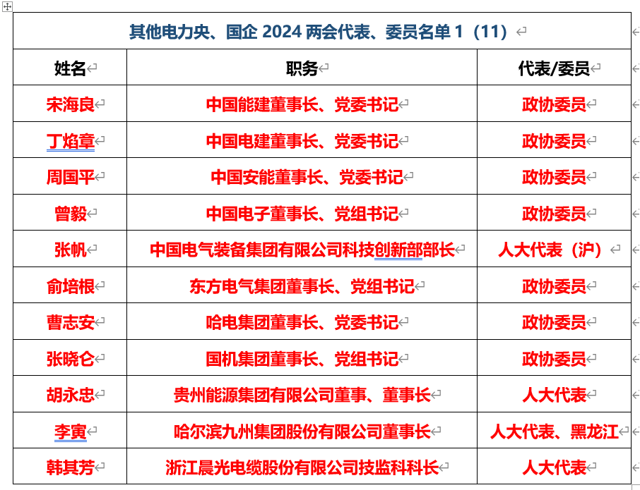 2024年能源、電力領(lǐng)域兩會(huì)代表、委員全名單!