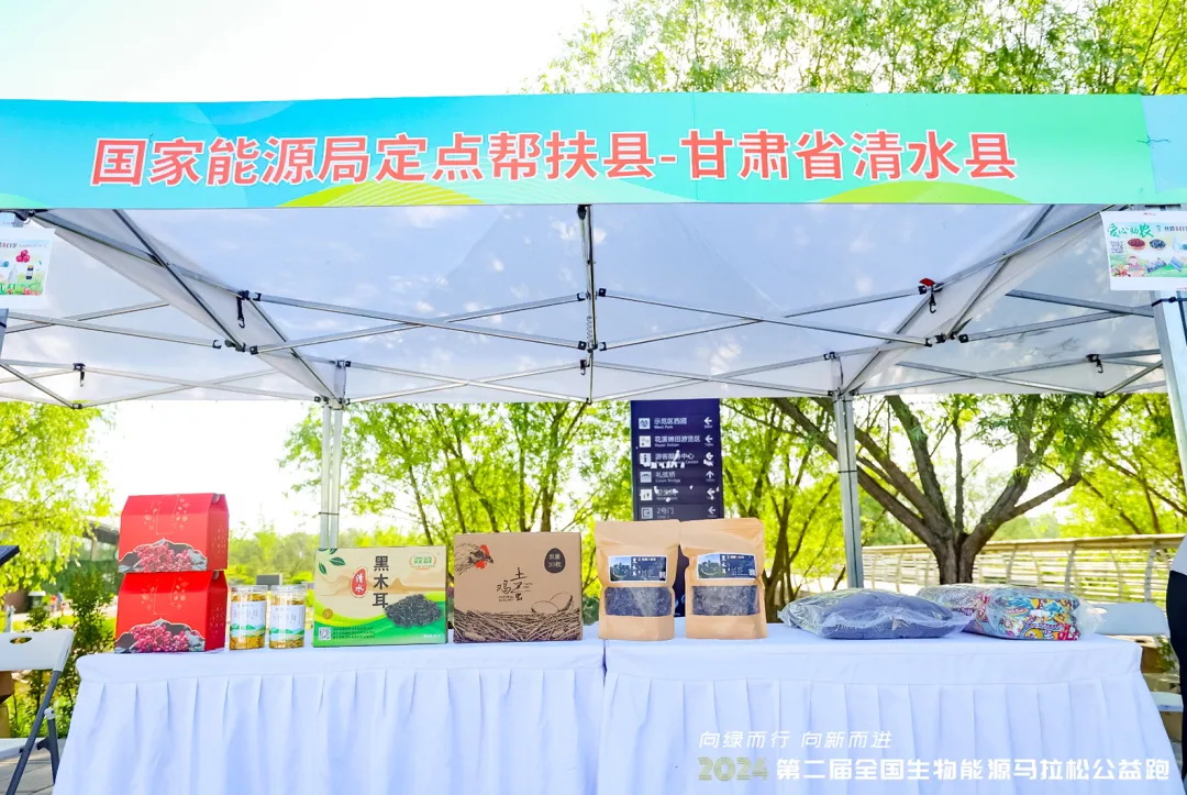 國家能源局作為“第二屆生物能源馬拉松公益跑”活動指導(dǎo)單位,會同活動主辦方將賽事活動與消費幫扶相結(jié)合,邀請定點幫扶的甘肅省通渭縣、清水縣在活動現(xiàn)場布置農(nóng)特產(chǎn)品展位,宣傳推介當(dāng)?shù)靥厣r(nóng)產(chǎn)品,吸引運動員和現(xiàn)場群眾咨詢品鑒,為兩縣開拓市場和品牌推廣起到積極促進(jìn)作用。