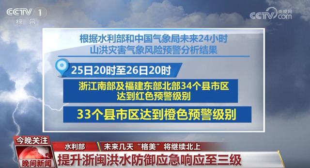 根據(jù)水利部和中國氣象局未來24小時山洪災(zāi)害氣象風(fēng)險預(yù)警分析結(jié)果,25日20時至26日20時,浙江南部及福建東部北部34個縣市區(qū)達(dá)到紅色預(yù)警級別、33個縣市區(qū)達(dá)到橙色預(yù)警級別。根據(jù)《水利部水旱災(zāi)害防御應(yīng)急響應(yīng)工作規(guī)程》,水利部將針對浙江、福建兩省的洪水防御Ⅳ級應(yīng)急響應(yīng)提升至Ⅲ級。