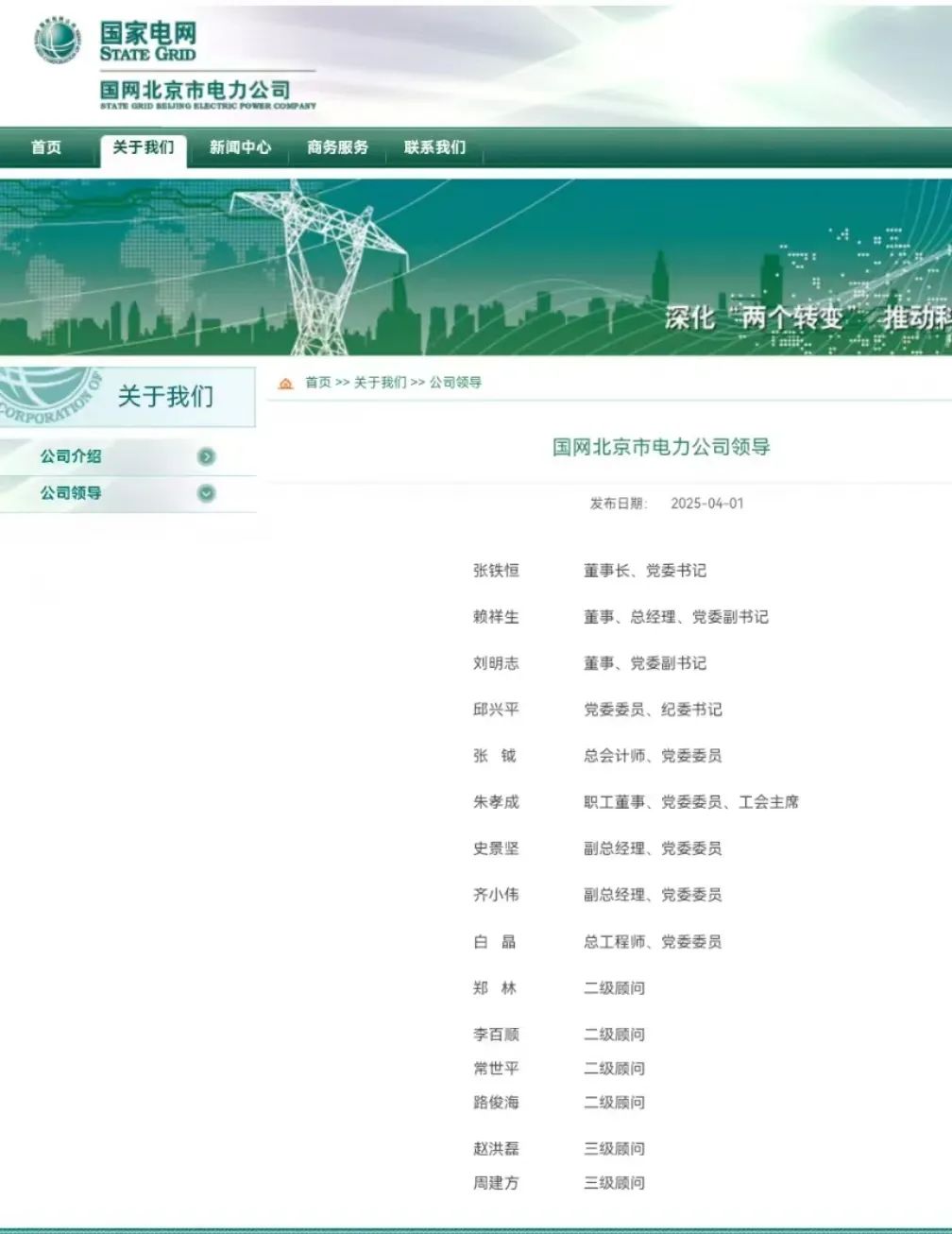 劉明志任國(guó)網(wǎng)北京市電力公司董事、黨委副書記,調(diào)整前為副總經(jīng)理,黨委委員。