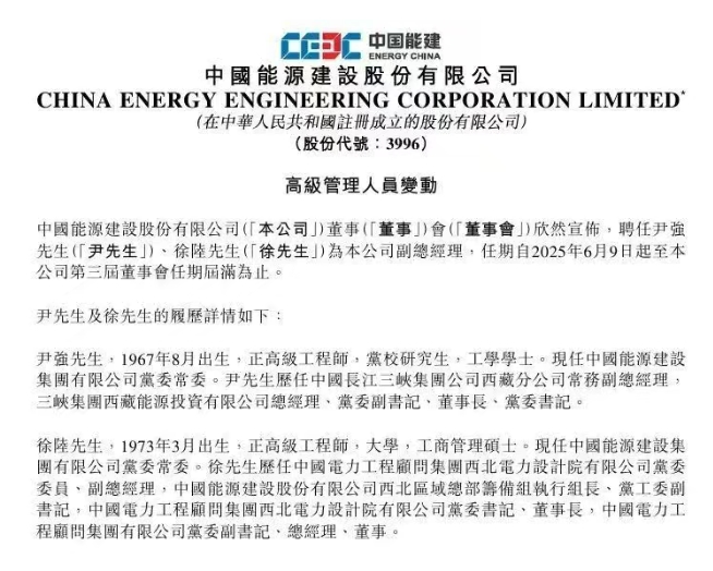 6月9日,中國能源建設股份有限公司(以下簡稱“中國能建”)召開董事會,審議通過了《關于調(diào)整公司高級管理人員的議案》。因工作變動原因,李麗娜辭任中國能建總會計師職務。