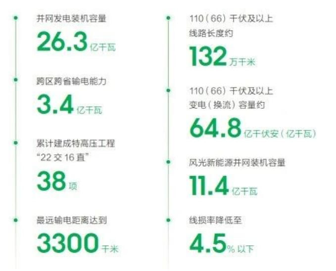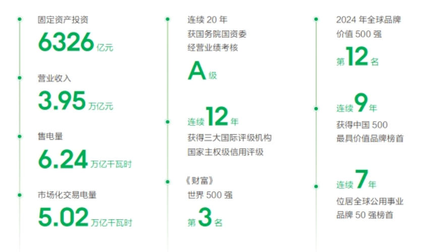 2024年完成固定資產(chǎn)投資6326億元,達(dá)成營業(yè)收入3.95萬億元;全年售電量6.24萬億千瓦時(shí),市場化交易電量5.02萬億千瓦時(shí);并網(wǎng)發(fā)電裝機(jī)容量26.3億千瓦,其中風(fēng)光新能源并網(wǎng)裝機(jī)容量11.4億千瓦;累計(jì)建成特高壓工程“22交16直”38項(xiàng),跨區(qū)跨省輸電能力3.4億千瓦,建成全球技術(shù)水平最高、配置資源能力最強(qiáng)、并網(wǎng)裝機(jī)規(guī)模最大、安全運(yùn)行時(shí)間最長的交直流混聯(lián)特大型電網(wǎng)。