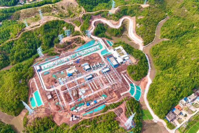 ▲閩贛背靠背聯(lián)網(wǎng)工程在福建的重要電源點(diǎn)——福建汀州500千伏變電站施工現(xiàn)場(chǎng)