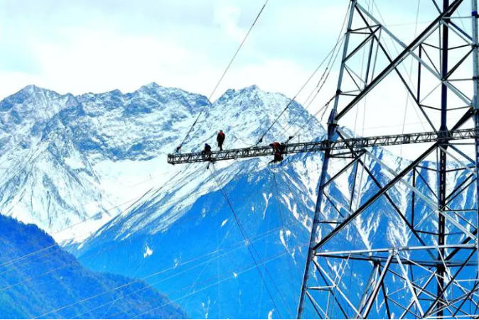 ▲國(guó)網(wǎng)冀北電力員工在阿壩—成都東1000千伏特高壓交流工程現(xiàn)場(chǎng)施工