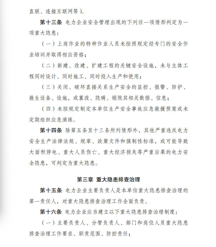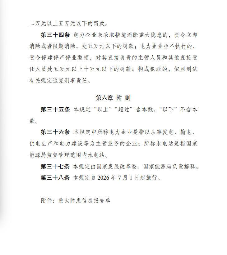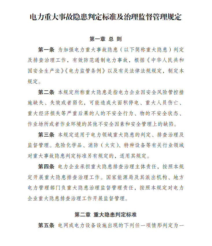 《電力重大事故隱患判定標準及治理監(jiān)督管理規(guī)定》 2026年第41號令