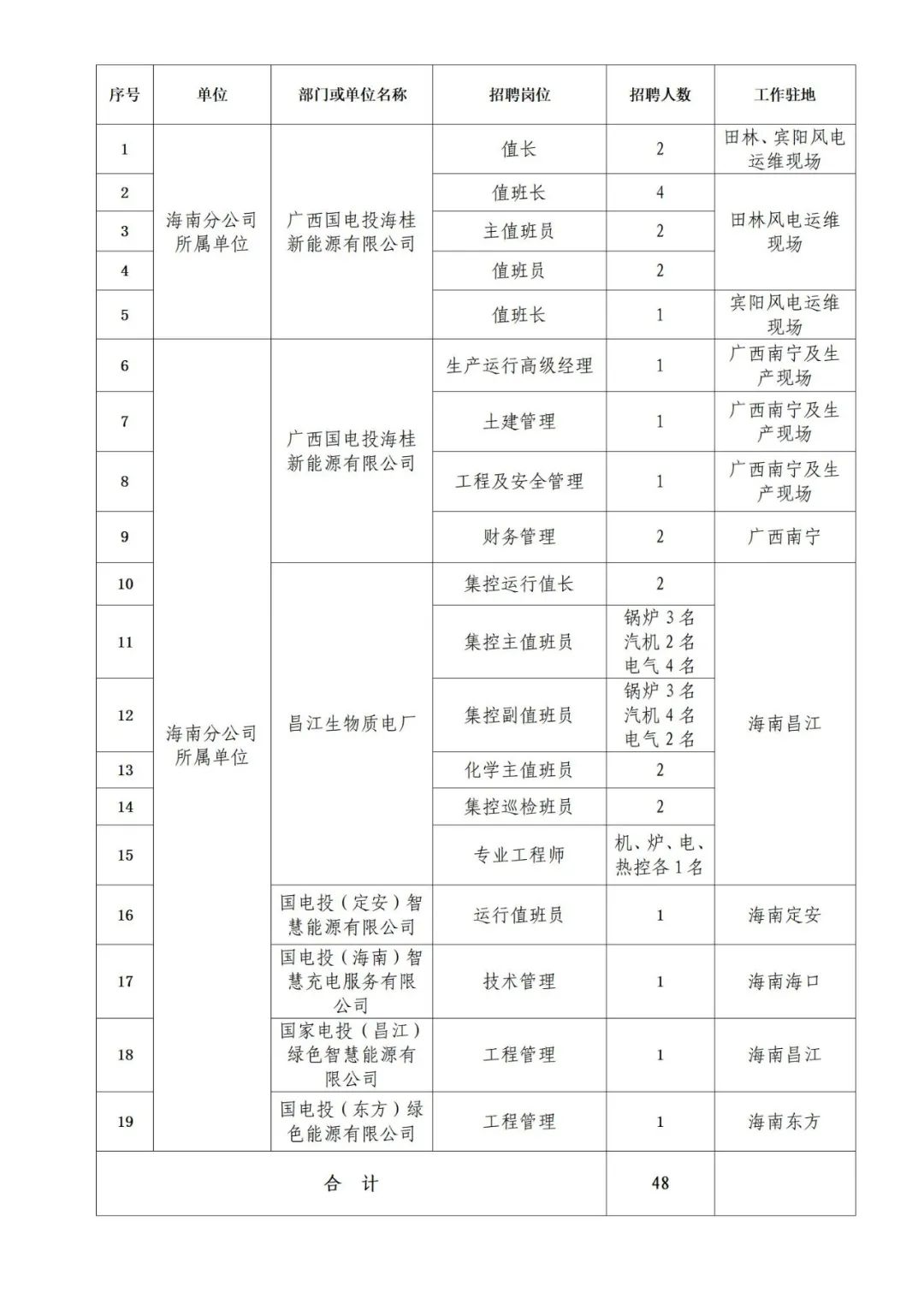 詳見《國家電力投資集團有限公司海南分公司及所屬單位招聘崗位職責及任職條件》(附件1)。